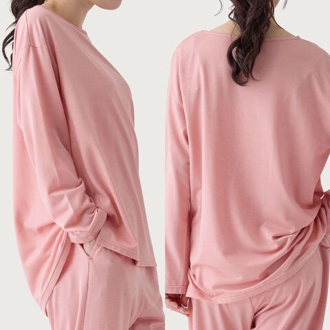ゆったりリラックス感ある身幅と、サイドスリット、前後差ある裾デザインでヒップまわりをさりげなくカバーしてくれる冷房対策にもおすすめな長袖トップス。
