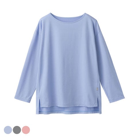ゆったりリラックス感ある身幅と、サイドスリット、前後差ある裾デザインでヒップまわりをさりげなくカバーしてくれる冷房対策にもおすすめな長袖トップス。