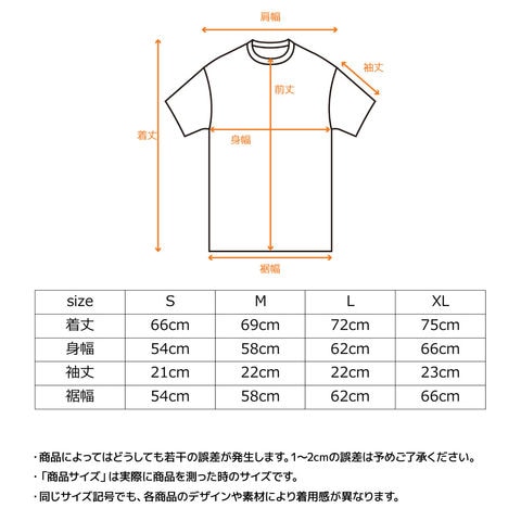 | 身幅 | 54cm | 58cm | 62cm | 66cm |