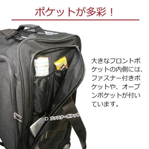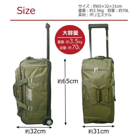 重たい物をたっぷり入れても、キャリーにすれば持ち運びもラクラク♪ 幅約65cm、容量約70Lの大容量タイプ。