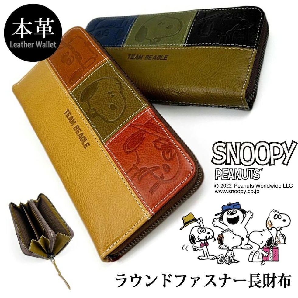 スヌーピー 財布 ラウンドファスナー ロングウォレット 長財布 牛革 本革 リアルレザー PEANUTS SNOOPY 73440 皮革 カウレザー メンズ レディース ユニセックス 男女兼用 プレゼント 送料無料 バレンタイン