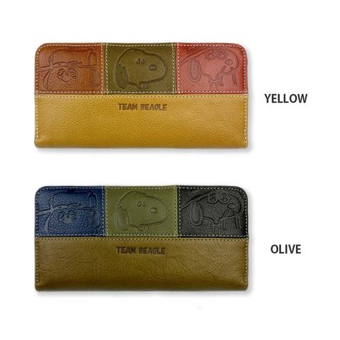 スヌーピーとウッドストックの型押しが施されたこだわりのデザイン。