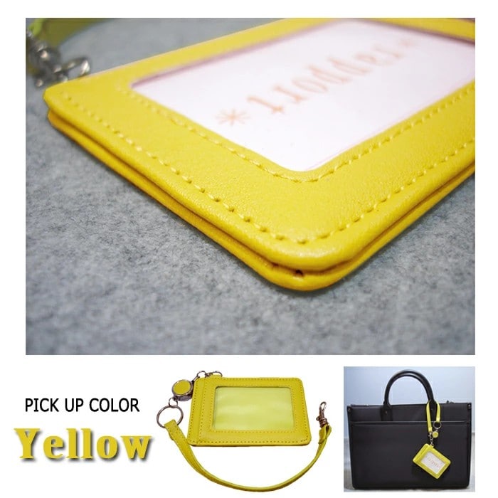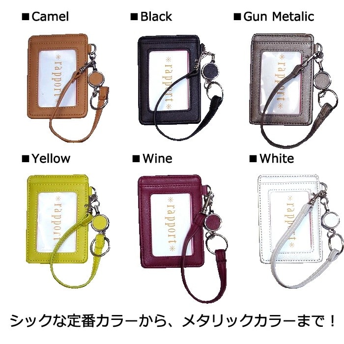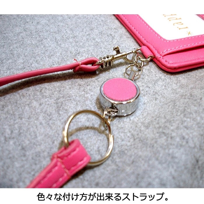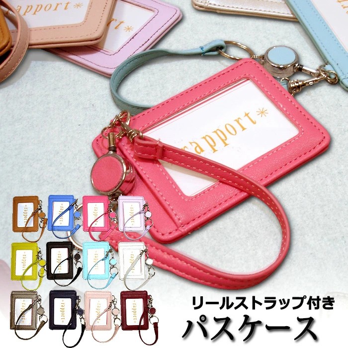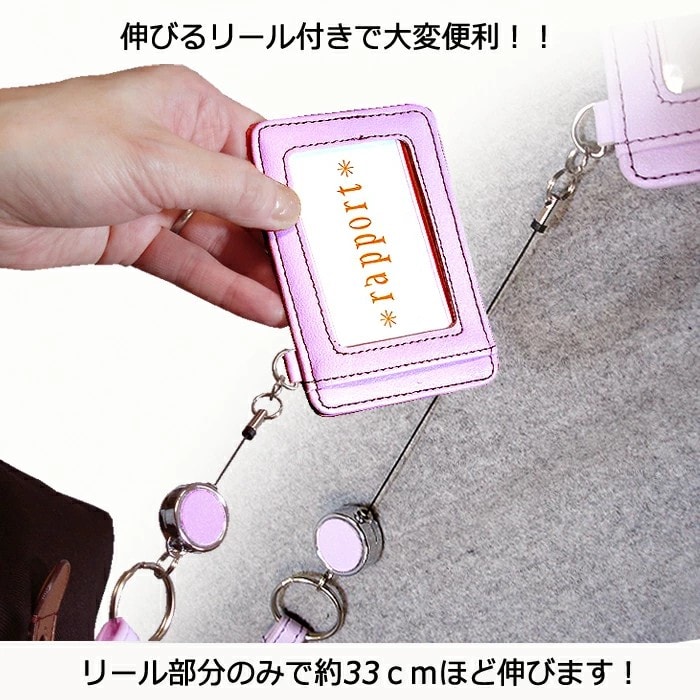 伸縮自在なリールが付いた、カラフルなパスケースです。