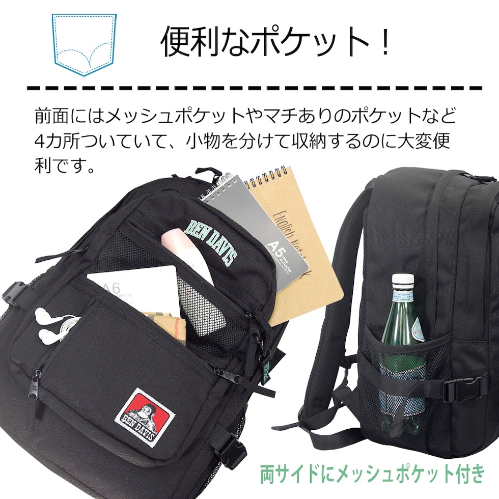 リュックサック BEN DAVIS ベンデービス はっ水加工 大容量 32リットル PCポケット 多機能 修学旅行 自然学校 林間学校 かっこいい おしゃれ 男女兼用 ベンデイビス 女の子 男の子 軽量 幅が広がる チェストストラップ bdw-8301cl