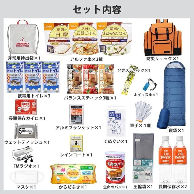防災グッズ26点 + サブリュック(cr-310) の 合計27点セットとなります。