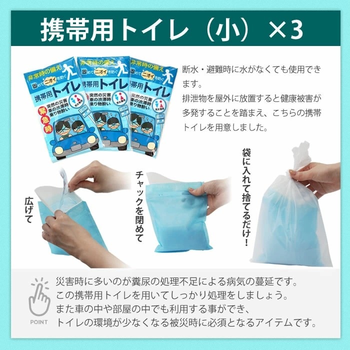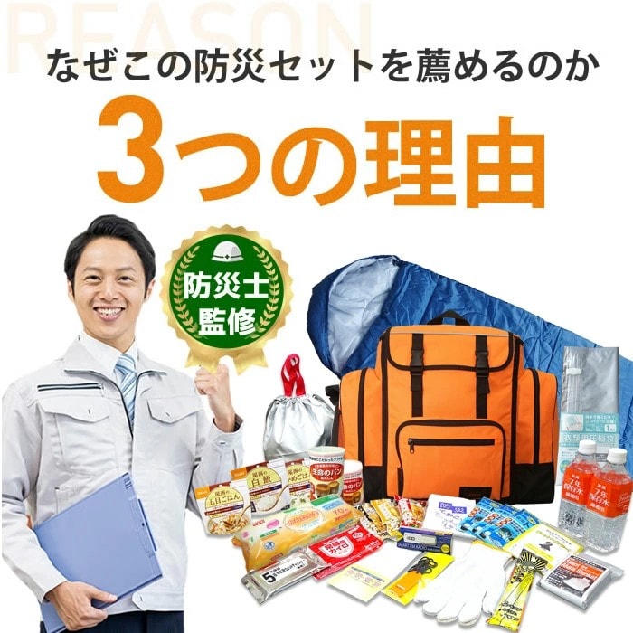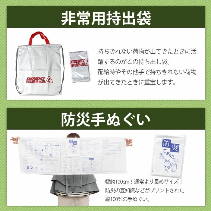 オリジナルバッグと、防災グッズを単品で一つずつ揃えられるよりもお得なセット価格となっております!