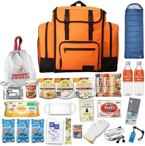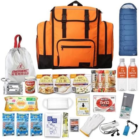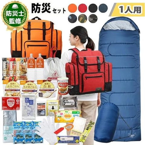 防災セット 1人用 寝袋 27点セット サブリュック 集中豪雨 撥水 防災グッズ 非常用持出袋 防災リュック 大容量 災害対策 地震 水害 防災 トイレ 保存水 避難グッズ 避難用品 bousai310-b 310