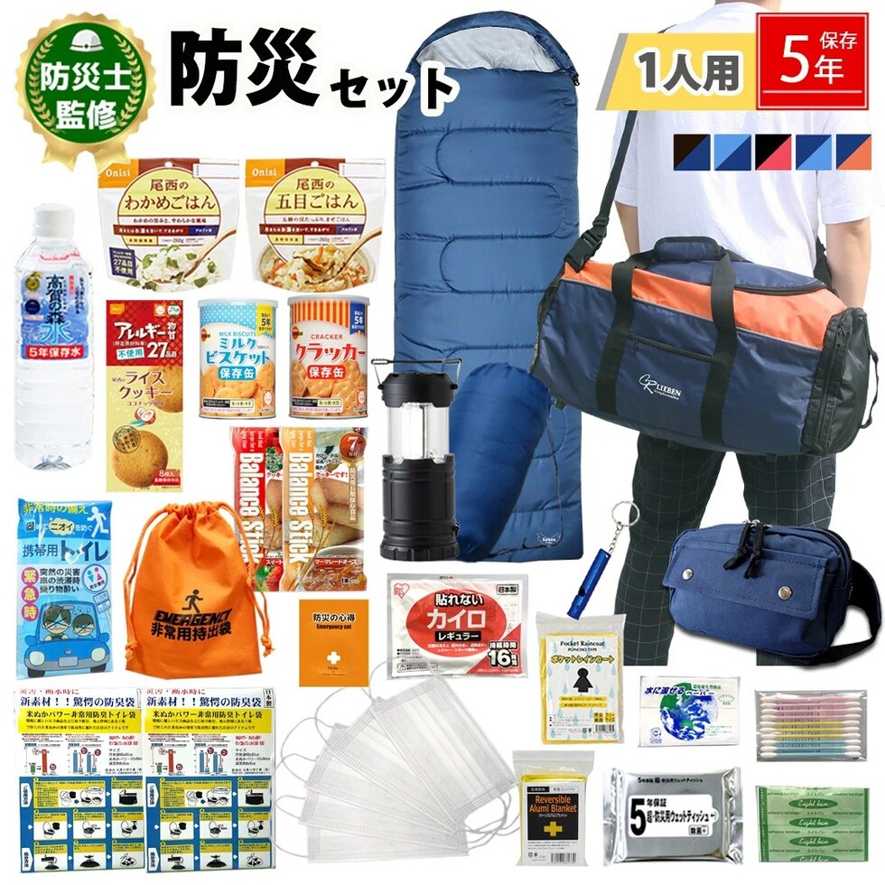 寝袋など28点の防災グッズとリーベンボストンバッグ、ウエストポーチがセットになった防災セットが登場!