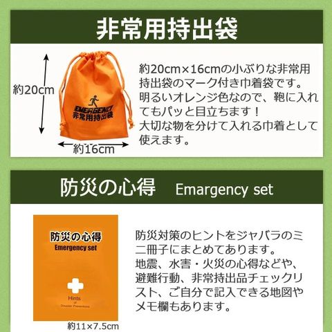 オリジナルバッグと、防災グッズを単品で一つずつ揃えられるよりもお得なセット価格となっております!