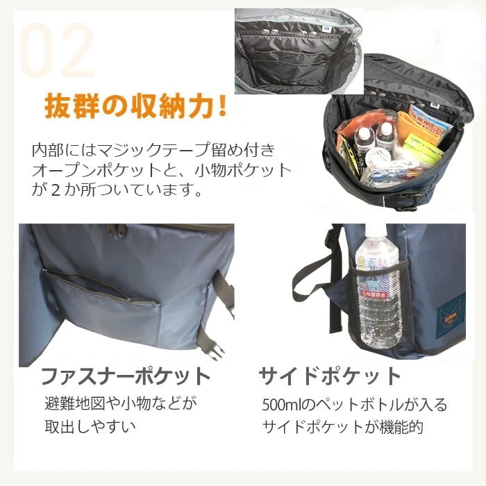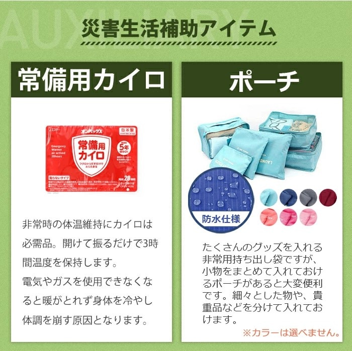 防災セットの他にも、タオル、着替え、常備薬なども入れられます!