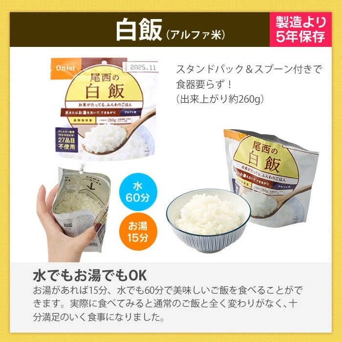 ※流通の段階で多少のお時間がかかるため、お手元に届く際には賞味期限が5年を切る場合もございます(賞味期限4年以上を保証)