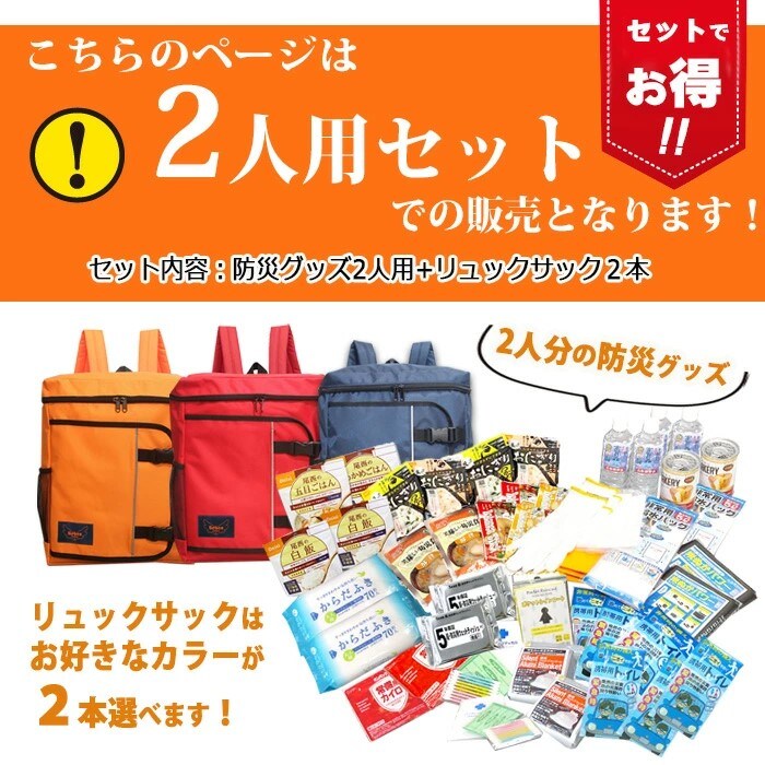 防災セット 2人用 60点セット 集中豪雨 日本製 豊岡産 リュック 防災グッズ 非常用持出袋 防災リュック 災害対策 防災用品 地震対策