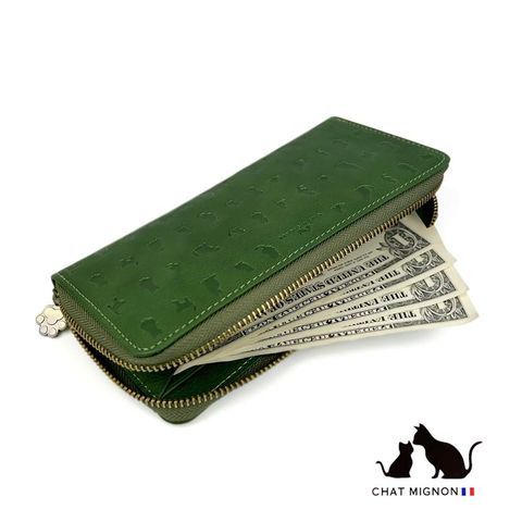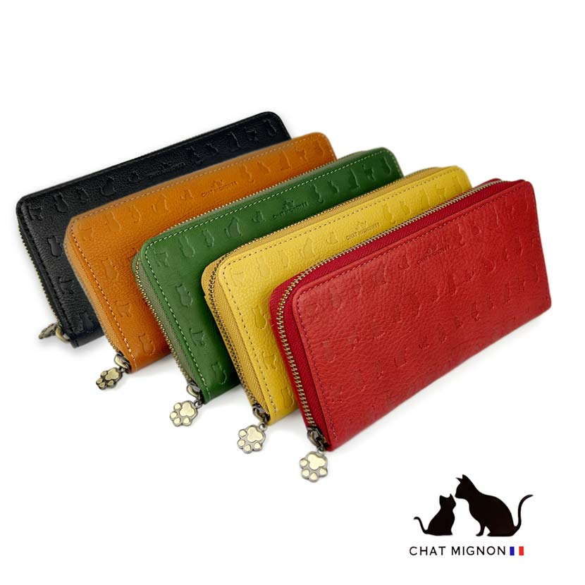 ラウンドファスナー 長財布 ウォレット シャーミニヨン 猫柄 本革 牛革 カウレザーリアルレザー 小銭入れ CHAT MIGINON 猫 ねこ レディース メンズ 大人かわいい ギフト プレゼント cm0006 送料無料 父の日