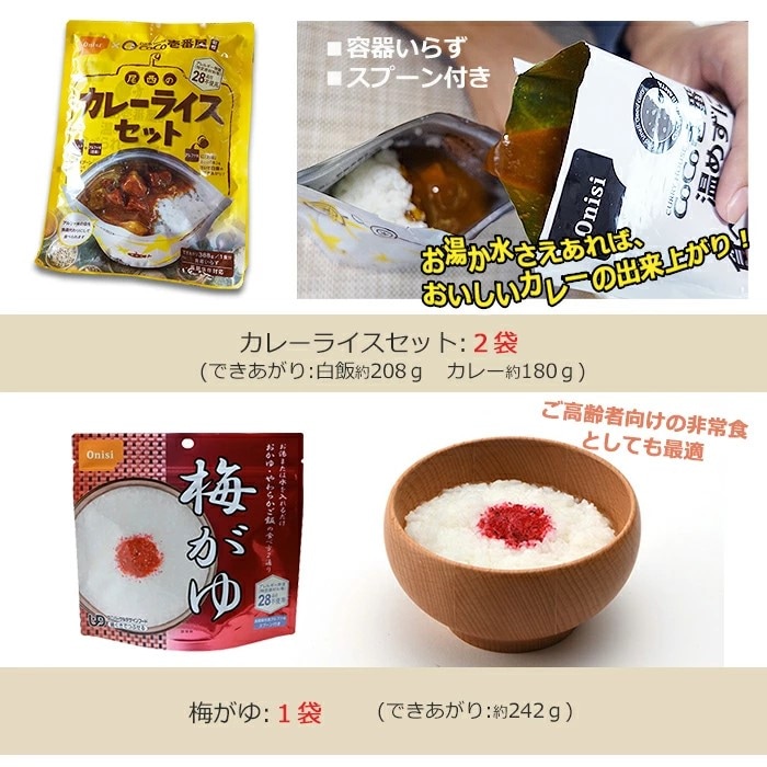 すべて国産米を使用し、非常用持ち出し袋などにセットしたり、キャンプなどでもお使いいただける美味しく手軽なごはんです!