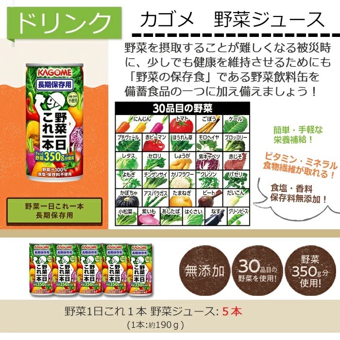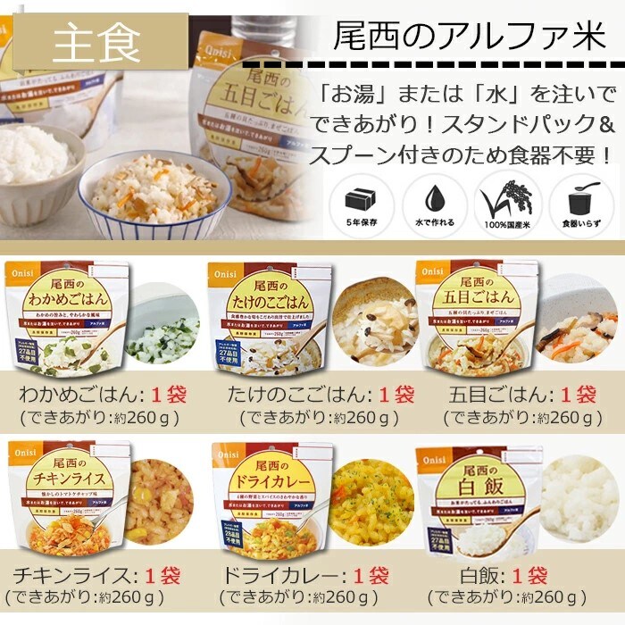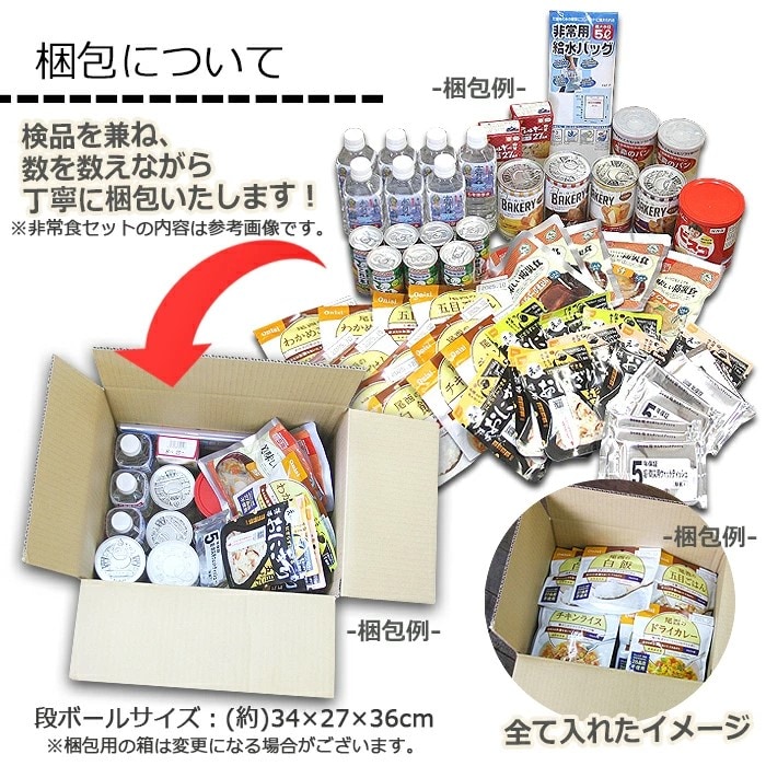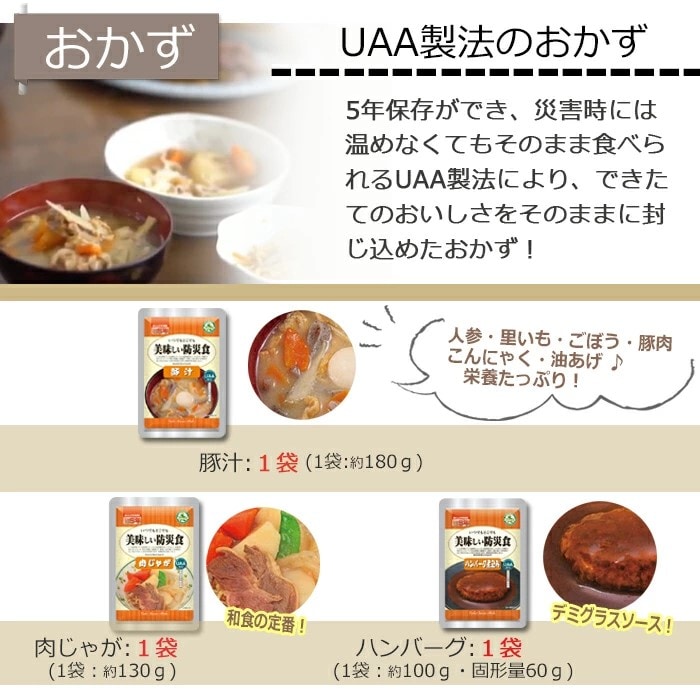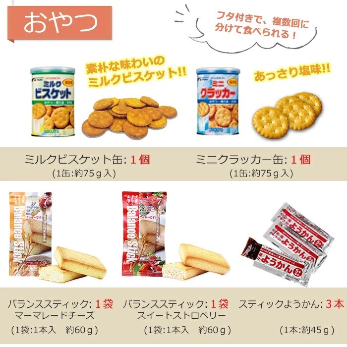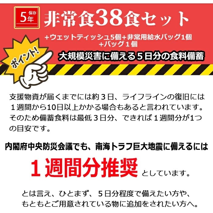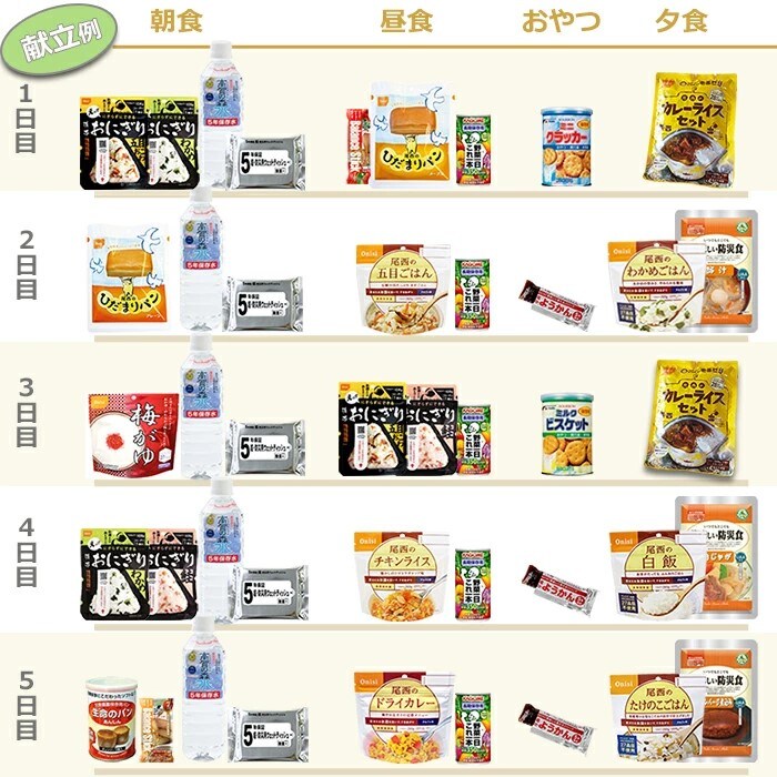 おひとり様、約5日分の非常食として。分けあってご家族分として。