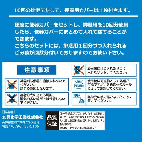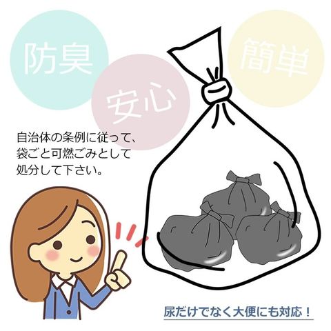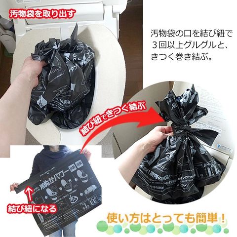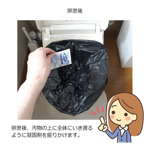 使用後に口を結び、個別のビニール袋に入れて、10回分使用すると、便座カバーとして使った袋にまとめて捨てられます。