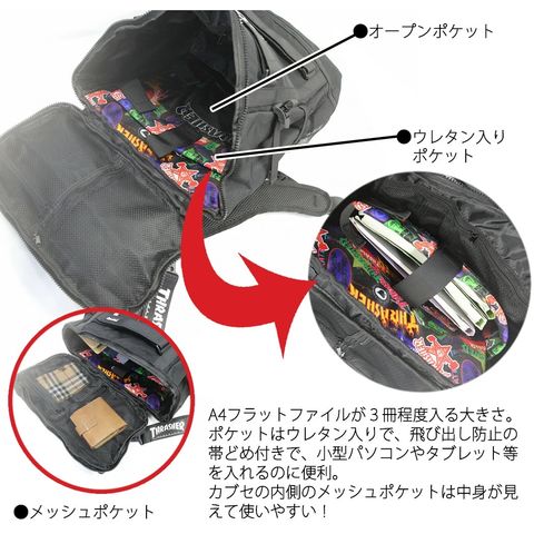 リュックサック THRASHER スラッシャー 30リットル 軽量 多機能 PCポケット リュック バックパック デイパック レディース キッズ アウトドア 通勤 通学 高校 部活 人気 スポーツ r1930 B4ファイル対応 開けやすい 父の日