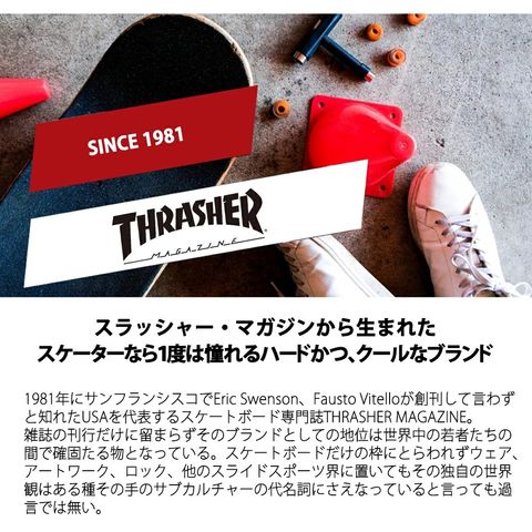 1981年にサンフランシスコでEric Swenson、Fausto Vitelloが創刊して言わずと知れたUSAを代表するスケートボード専門誌THRASHER MAGAZINE。