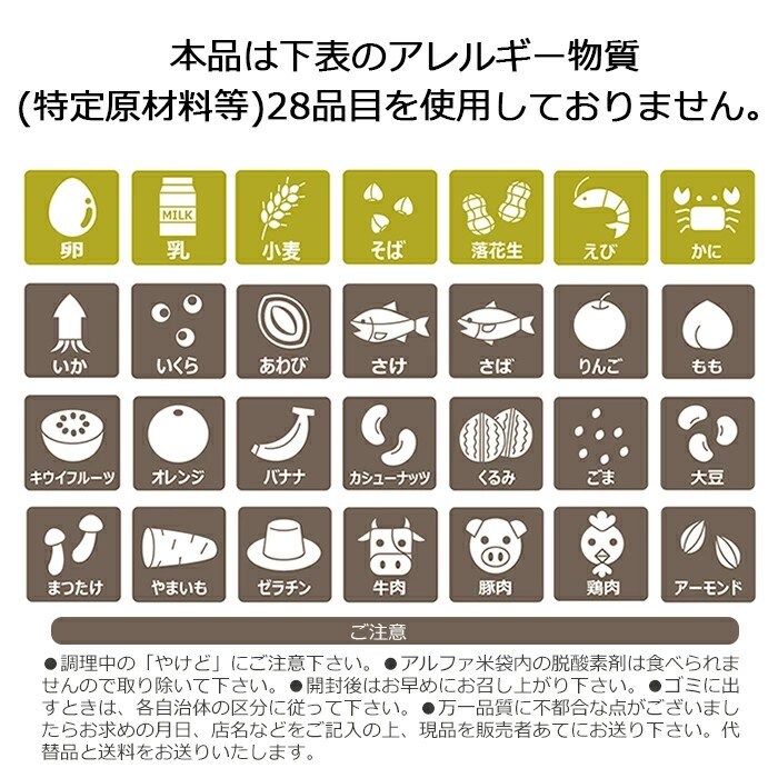 どなたでも安心して食べられるアレルギー物質(特定原材料)28品目不使用。