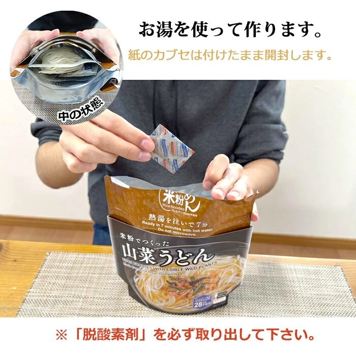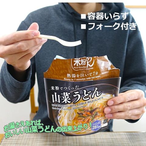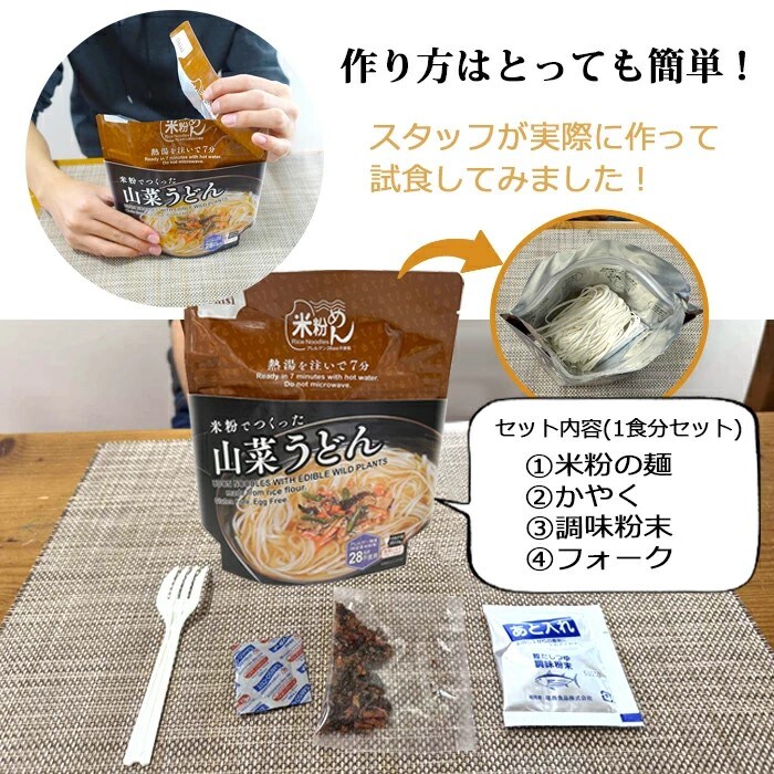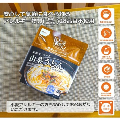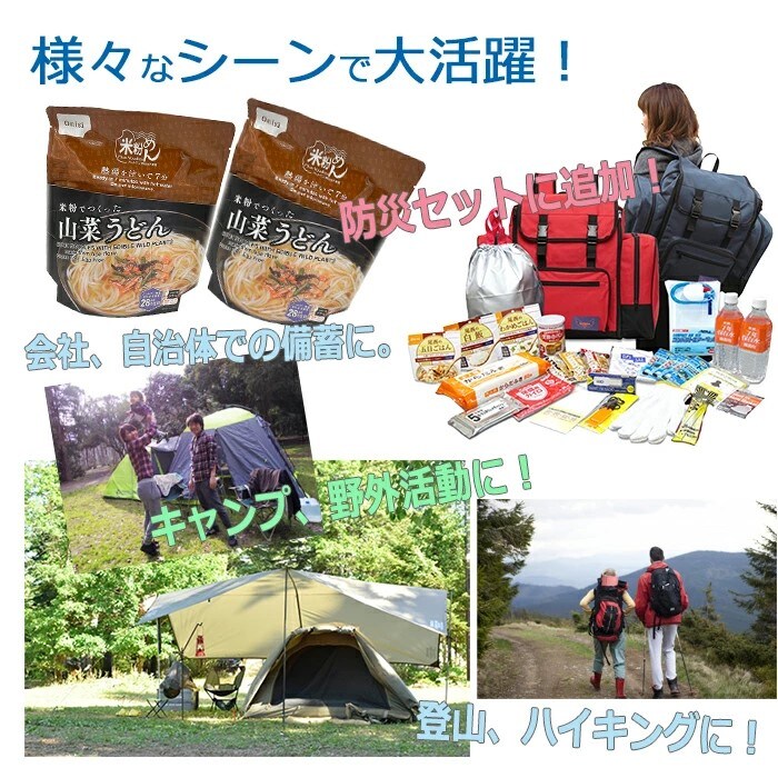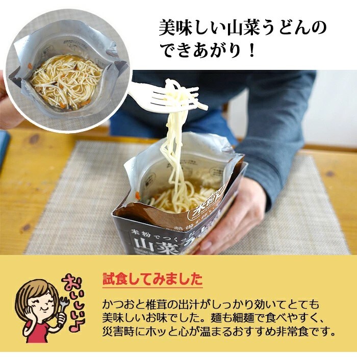 日本製で安心、非常時にホッと心が和む美味しい山菜うどんセットです。