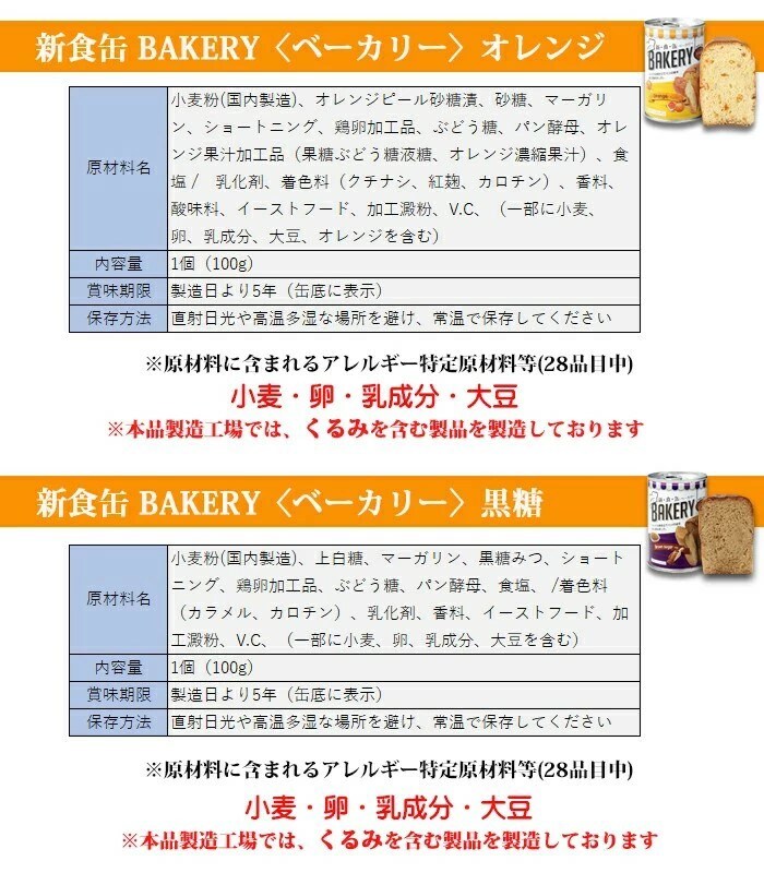 カロチン)、香料、酸味料、イーストフード、加工澱粉、V.C、(一部に小麦、卵、乳成分、大豆、オレンジを含む)
