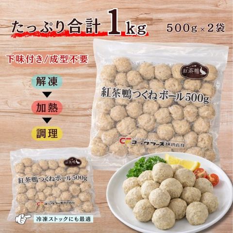 【紅茶鴨】つくねボール(冷凍)1kg(500g×2袋) 簡単調理 / つくね 鴨 合鴨 団子 肉団子 鍋 焼鳥 弁当 おかず