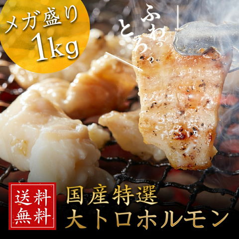 メガ盛り 1kg 国産 大トロホルモン(小腸)送料無料 国産牛 ホルモン 小腸 もつ鍋 BBQ 焼肉 もつ煮込み モツ バーベキュー