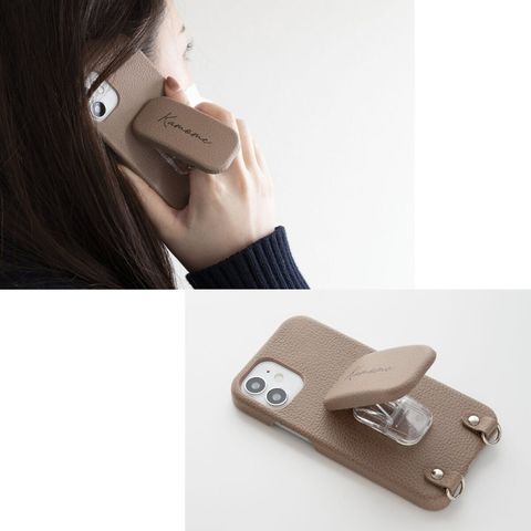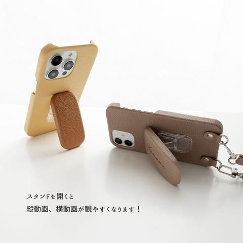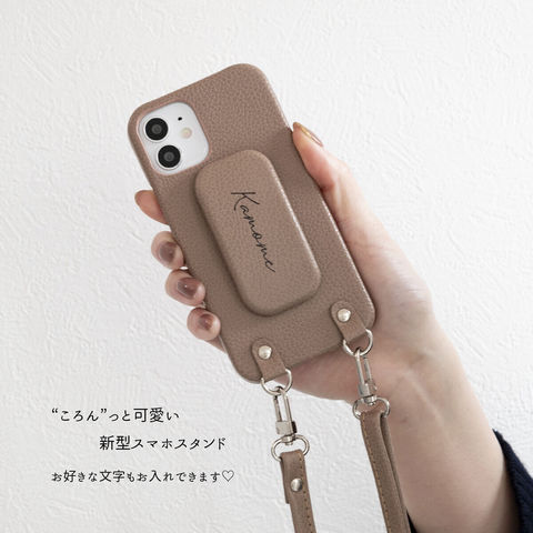 まるっとケース スマホスタンド付き 【 シュリンクレザー × シュリンクレザー 】 縦動画 横動画 スマホグリップ 落下防止 多機種対応 誕生日 記念日 贈り物 ギフト プレゼント 名入れ無料 ベージュ Galaxy S24
