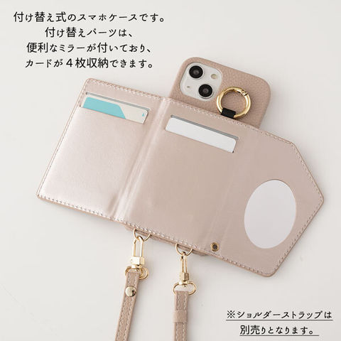 スマホケース 多機種対応 【 付け替え ミラー カードポケット スマホケース 】 ミラー付き 背面手帳型ケース カード入れ ICカード カード収納 背面 くすみカラー おしゃれ ケース 別売りオプションで スマホショルダー に ベージュ Xperia 10 III