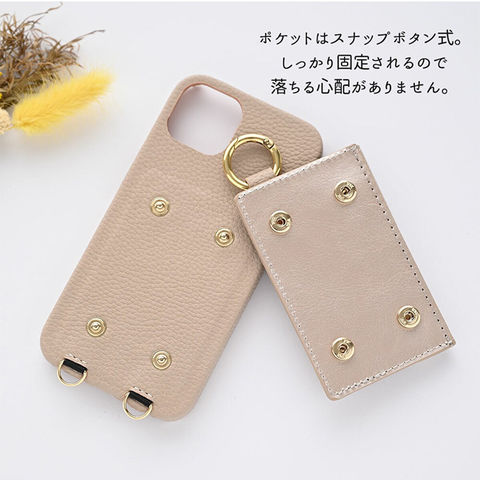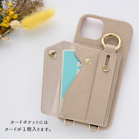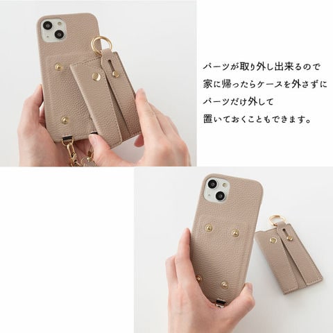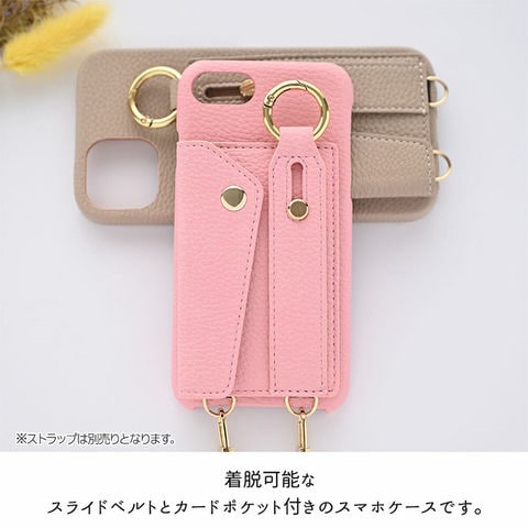 取り外し機能がついたスライドベルト&カードポケット付きのスマホケースです。