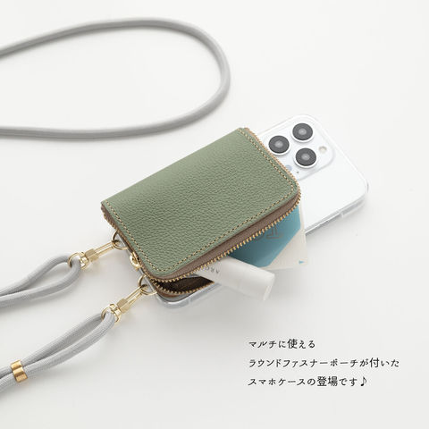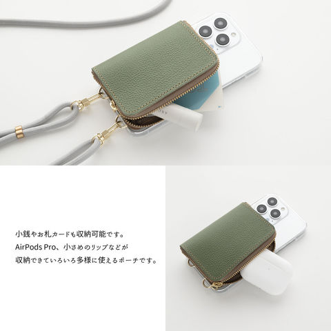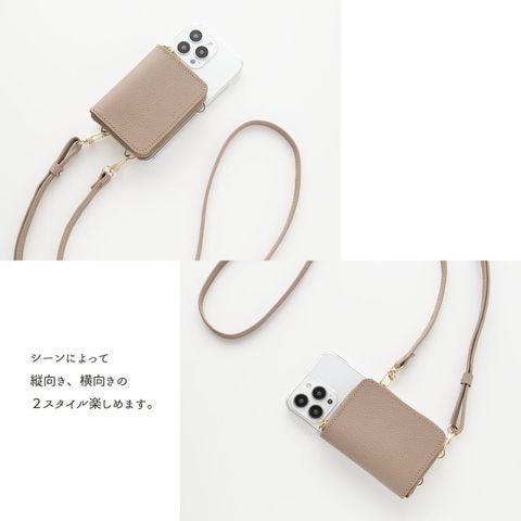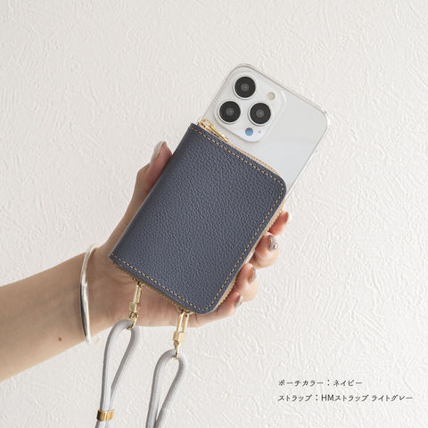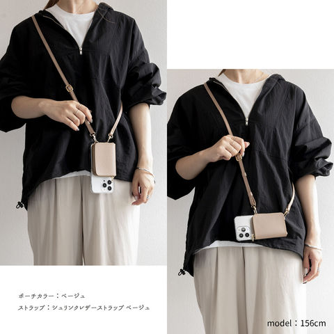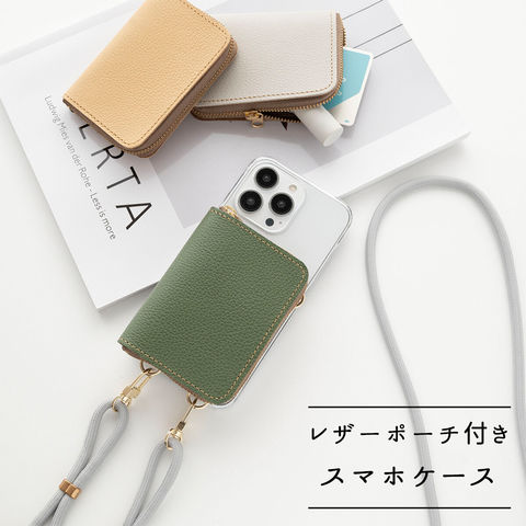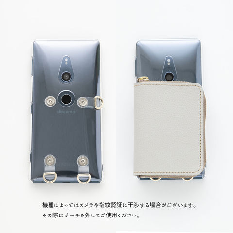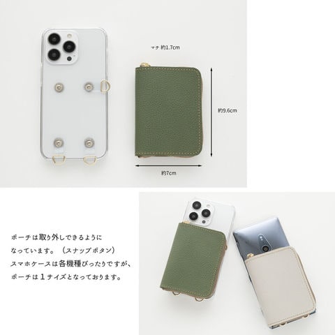 多機種対応 スマホケース 付け替え式 ラウンドファスナーポーチ付 【 シュリンクレザー × クリア 】 スマホショルダー ベージュ Google Pixel 8a