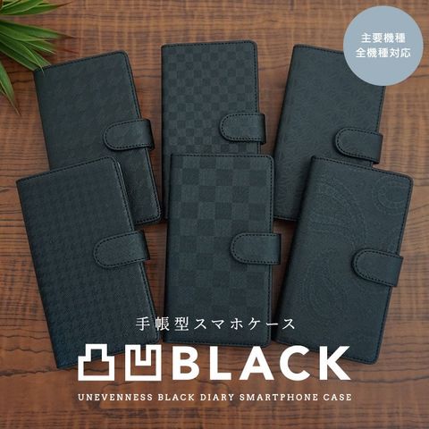 スマホケース 手帳型 多機種対応 凸凹 BLACK 7柄 男性 人気 黒 シンプル 麻の葉 AQUOS sense6/6s