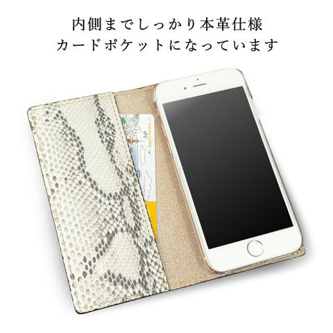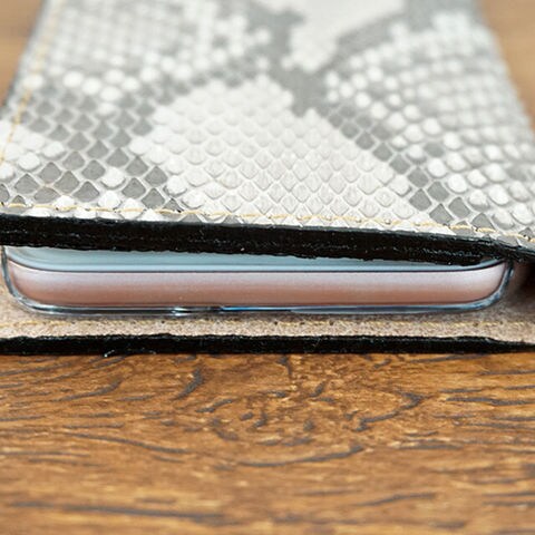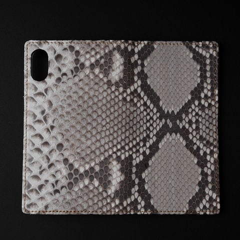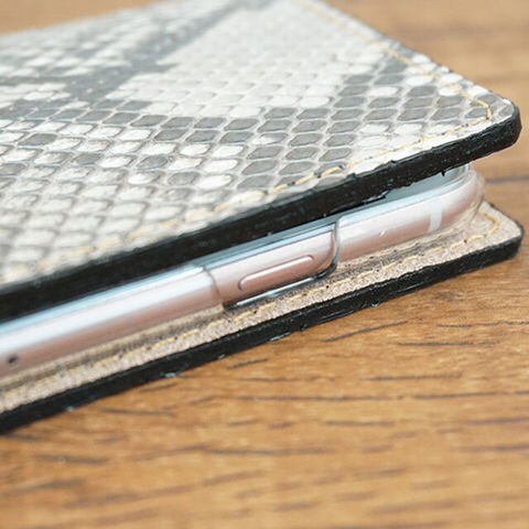 本革ダイヤモンドパイソンを牛床革に貼り、職人が1つづつ手作業で仕上げたスマホケースです。