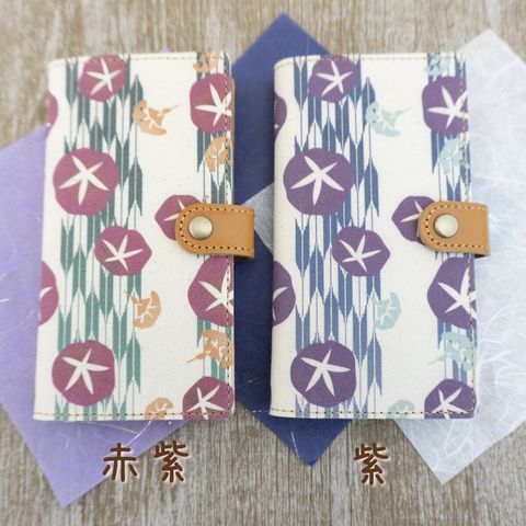 多機種対応 スマホケース 手帳型 【 朝顔 】 浴衣 花柄 イタリアンレザー 赤紫 AQUOS sense3/Android One S7