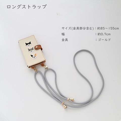 ご好評いただいております3匹の猫の手帳型スマホケースに縦下げパーツをつけました。