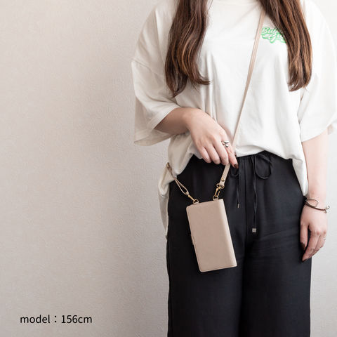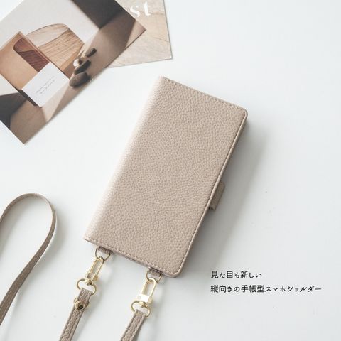 見た目も新しい縦向きの手帳型スマホショルダーです。