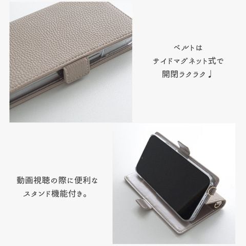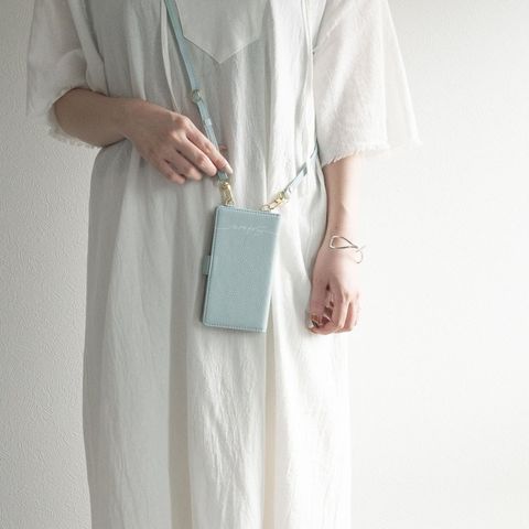 見た目も新しい縦向きの手帳型スマホショルダーです。
