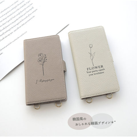 多機種対応 スマホケース 縦向き 手帳型 【 Simple デザイン - flower ‐ 】 スマホショルダー ベージュ Xperia 10 III
