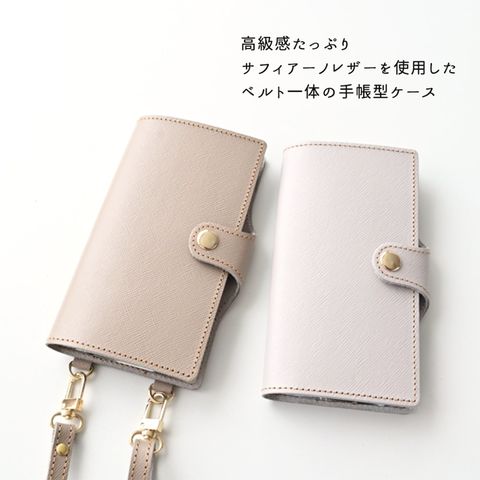 多機種対応 スマホケース 手帳型 スマホショルダー対応 【 サフィアーノレザー 】 GD ベルト一体 ライトベージュ Google Pixel 8a