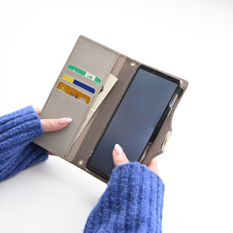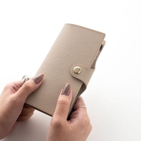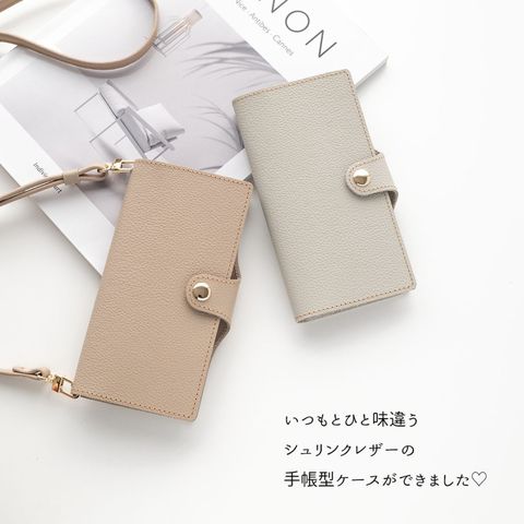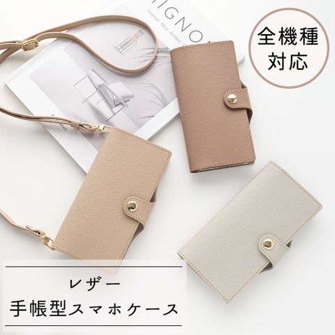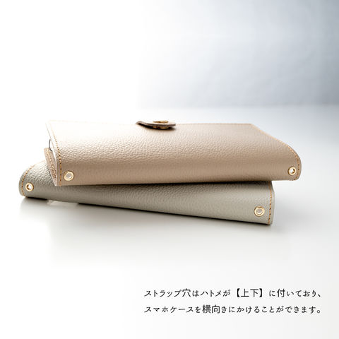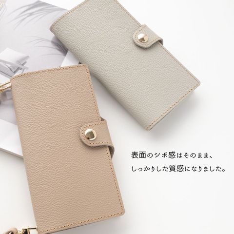 多機種対応 スマホケース 手帳型 ベルト付き 【 new シュリンクレザー 】 本革 縦下げパーツ付 ベージュ Galaxy S24