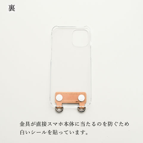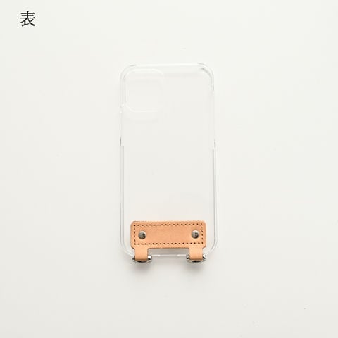 クリアのスマホケースと革紐で制作したストラップのセットです。