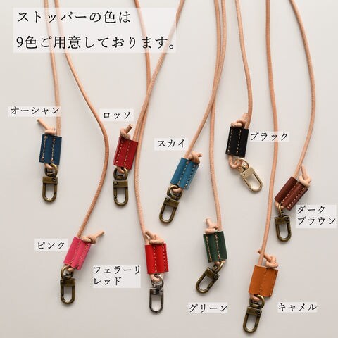 ストラップ:本体 革紐 ストッパー イタリアンレザー
