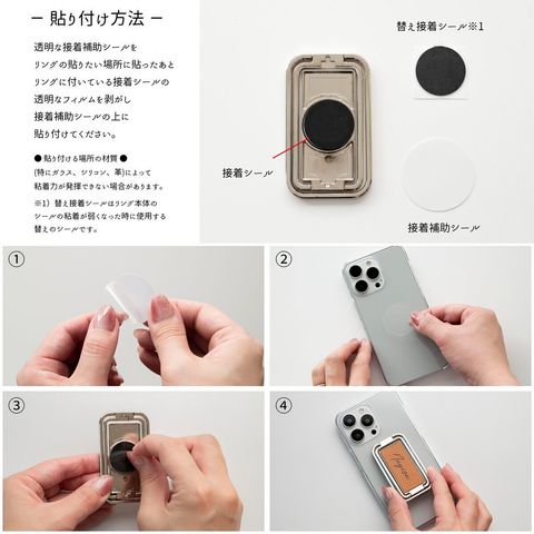 ※替え接着シールはリング本体のシールの粘着が弱くなった時に使用する替えのシールです。