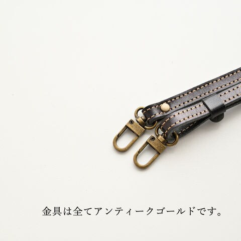 栃木レザー Sジーンズを使用した、長さ調節可能なストラップです。