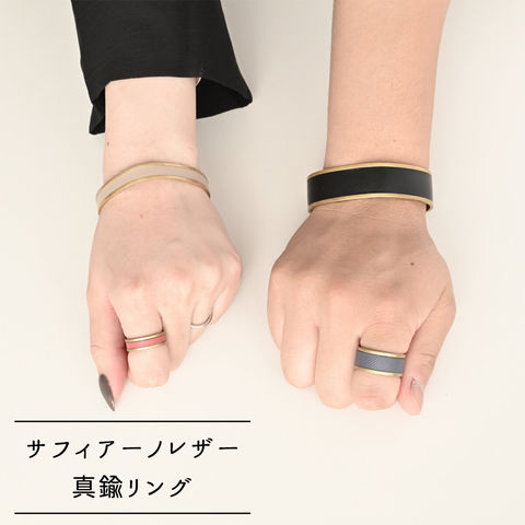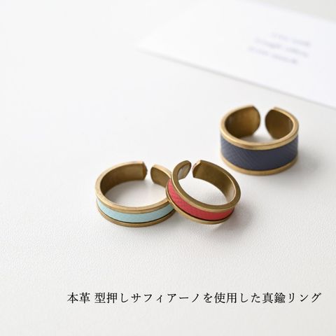 本革 型押しサフィアーノを使用した真鍮リングです。