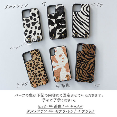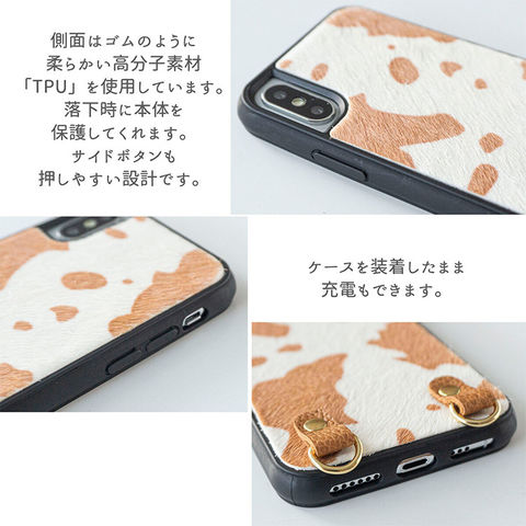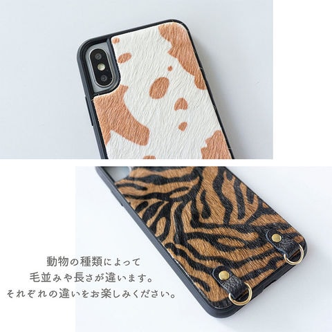 iPhone限定 ストラップ付 リアケース 【 アニマル柄 】 ハラコ調 牛 iPhone14