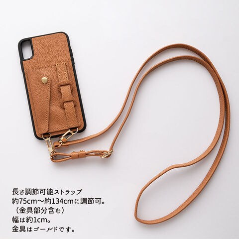 iPhone限定 リアケース カードポケット・ベルト付き ショルダーストラップ付き 【 シュリンク 】 姫路レザー レッド iPhoneXR