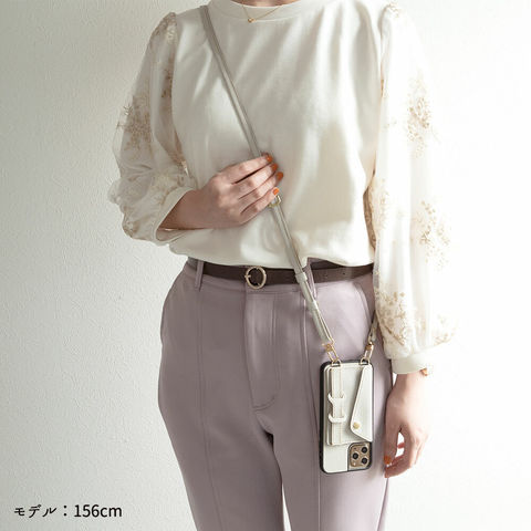 シュリンクレザーの長さ調節可能ロングストラップもセットになっています。