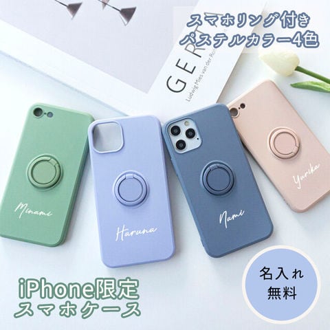 iPhone限定 スマホケース 【 リング付きTPUケース ペール5カラー 名入れ 】 ラベンダー iPhone16