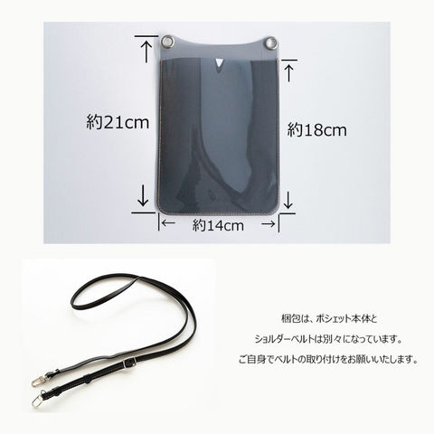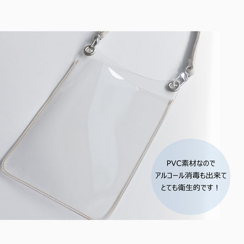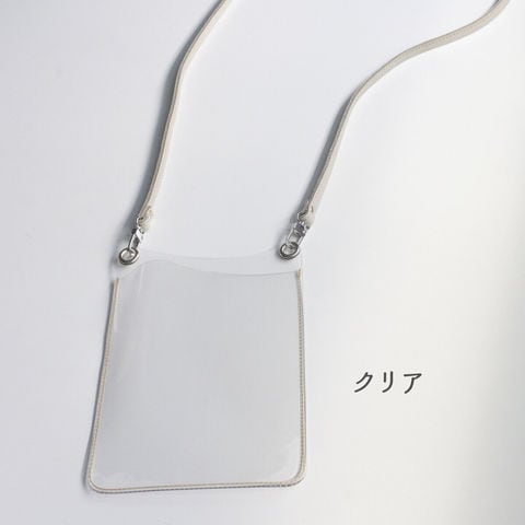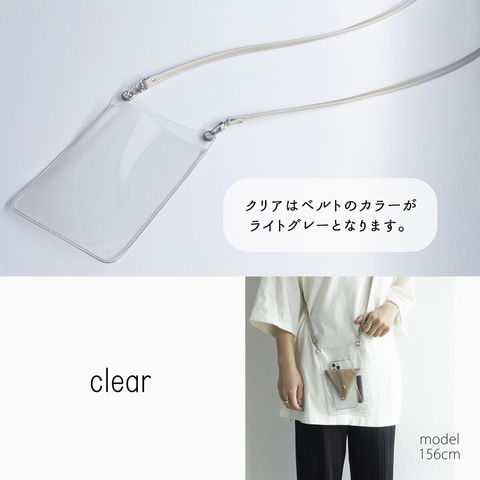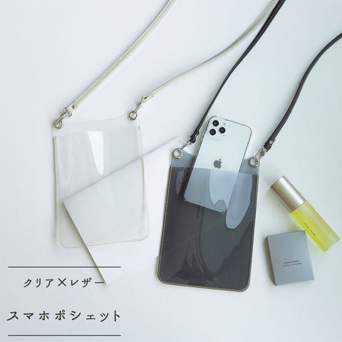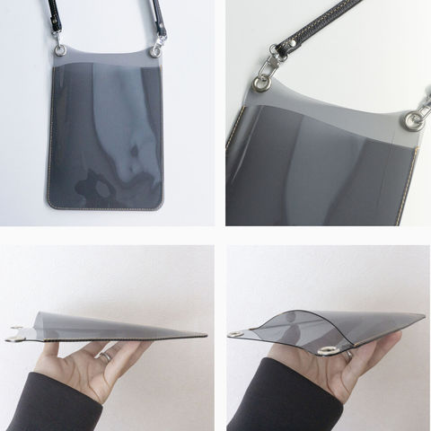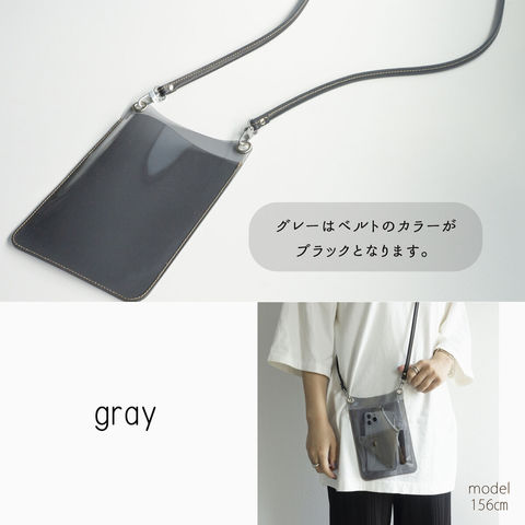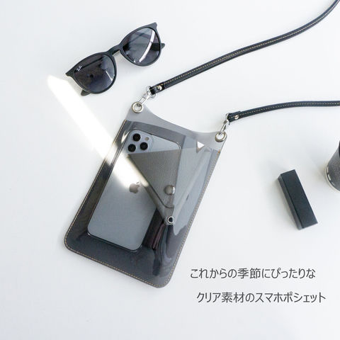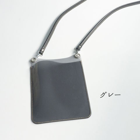 スマホポシェット 【 クリア × レザー 】長さ調整可 ポシェット ショルダー グレー